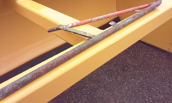 When I was removing the old paint I found a lot of rust stains around the tail post and called my A&P/IA friend over for a look. He started in with a razor knife and things got pretty ugly fast.
