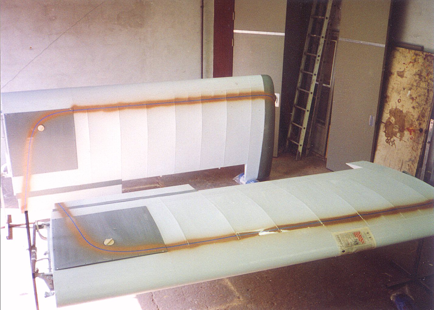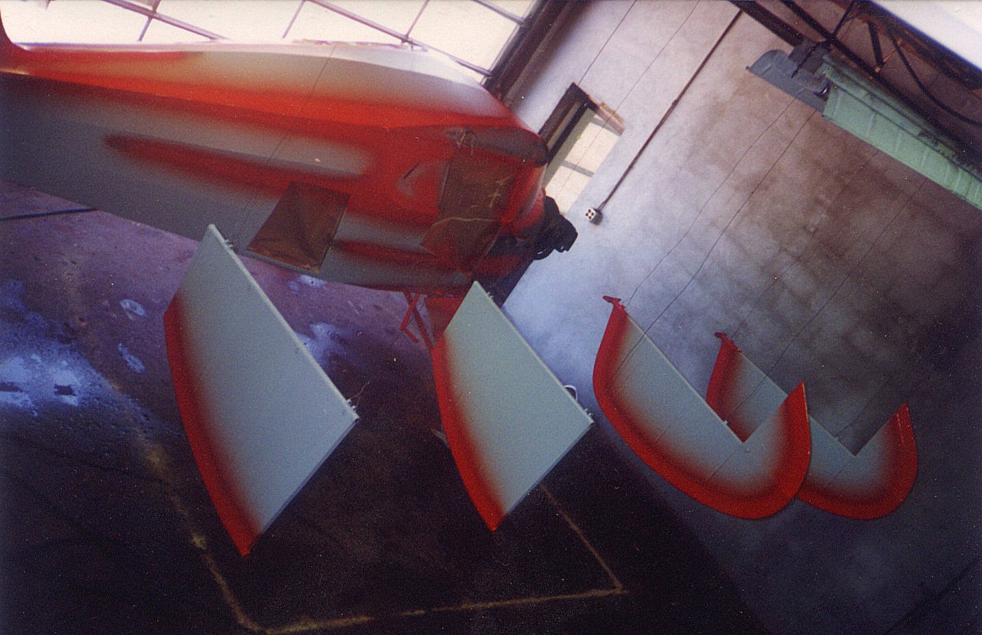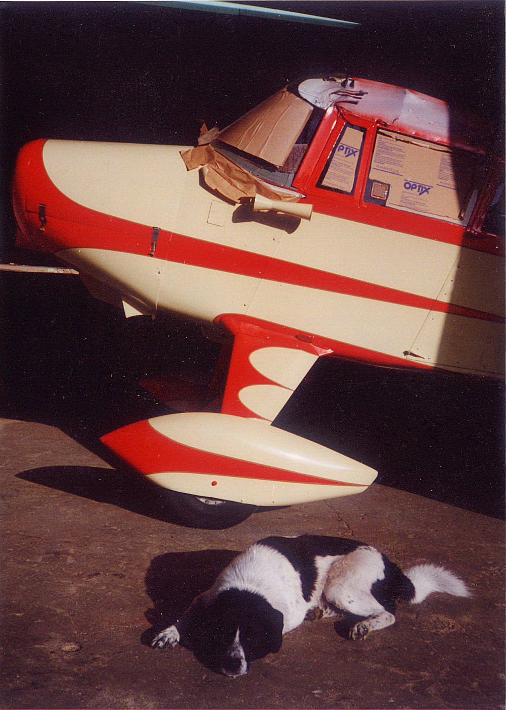 We converted the gear that winter, slapped on a pair of Madras tips, and squirted another coat of elastized car paint on it. We flew it around for about 10 years like that until I bought him out and decided remove the old and repaint.