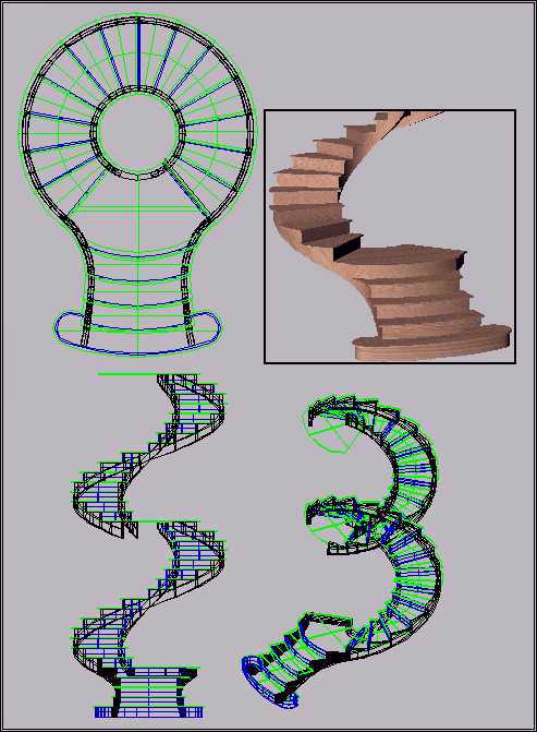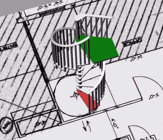 Here I put a rendering right on the house plan. The builder couldn't picture the way the landing and first tread would work.