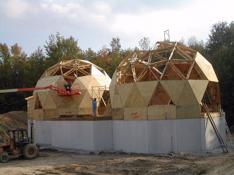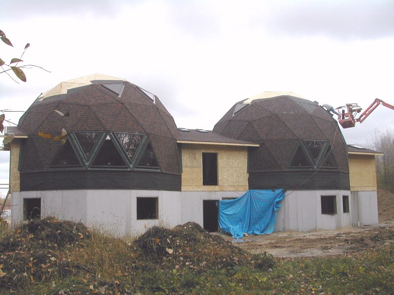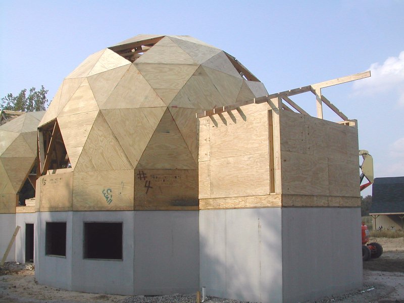When the weather breaks around here, we'll be going back to stucco the straight sections as well at the 4 foot band encompassing the domes.