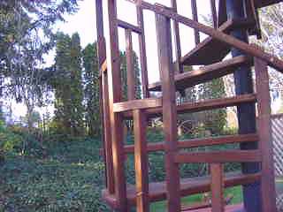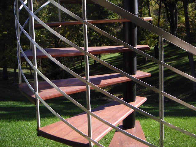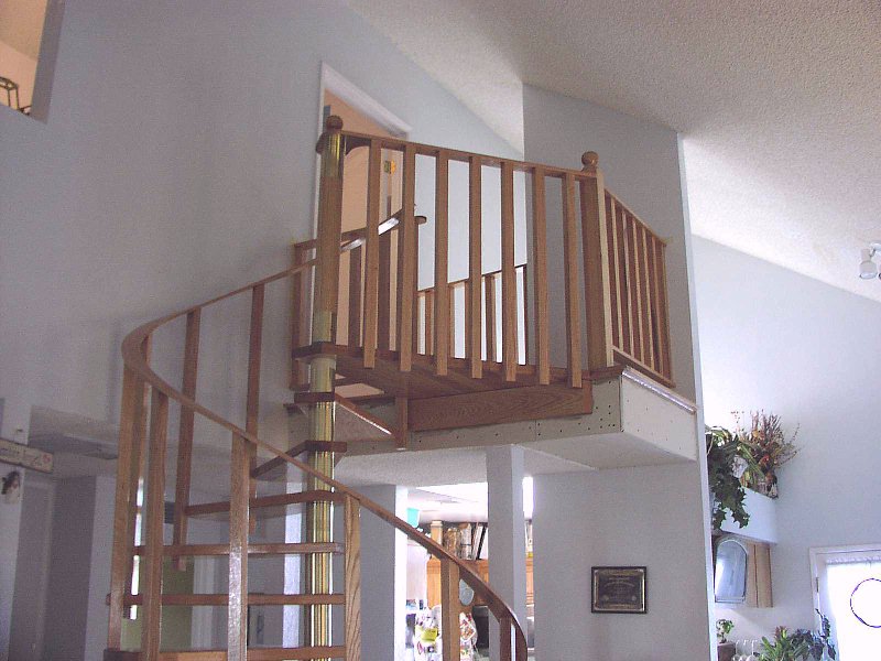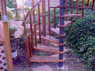 pointed out. His treads are two layers of spruce 2x6's, The railing has a strip of wood