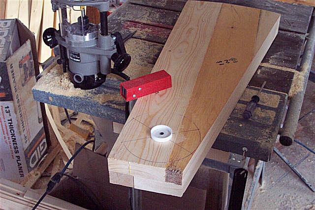 just swing the router back and forth at the correct radius. On the narrow end I just used