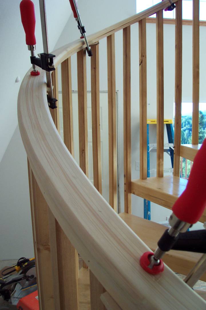 The railing was made with strips of clear fir. Was able to get one 20 foot