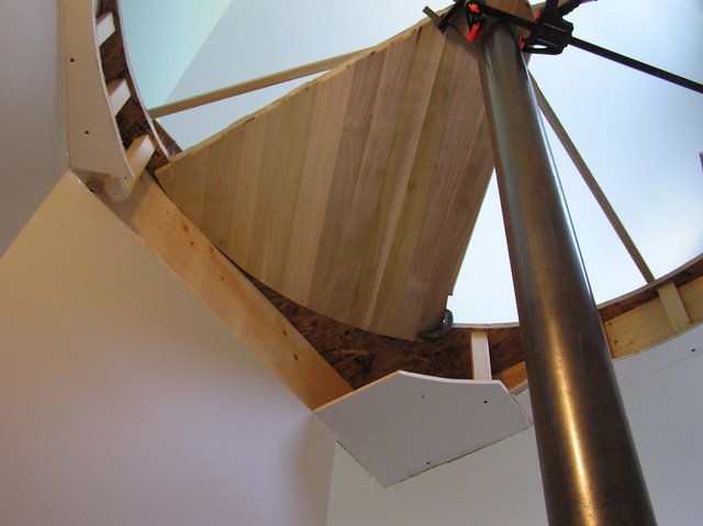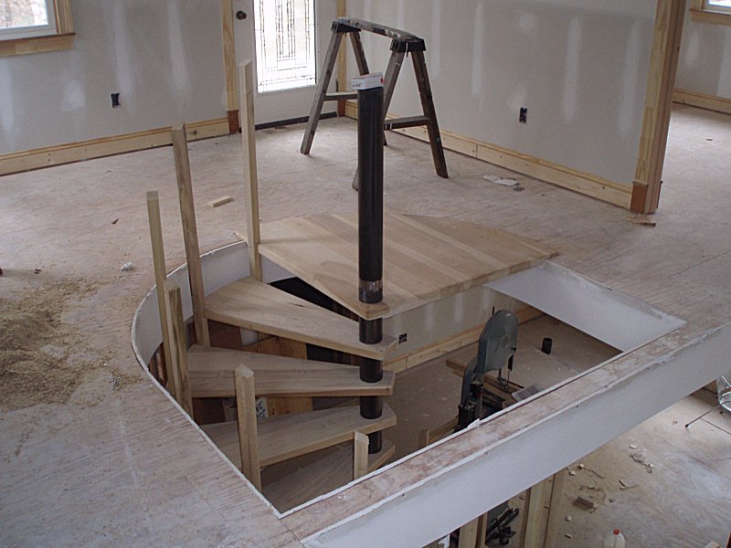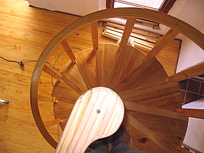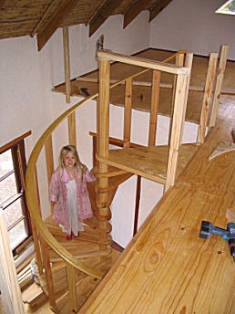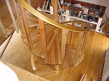 You can also see that Steve has made his spacers on a wood lathe. Did you happen to notice there are actually two spirals here, one continuing down another floor.