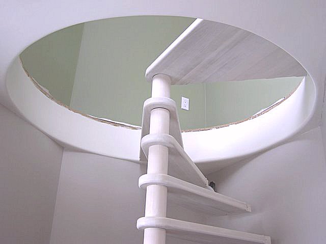 I like the round opening in the floor better. However, this spiral stair is not