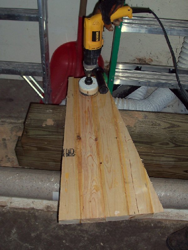 drill the 3 5/8" holes. To prepare the slats for the handrail, I again borrowed a