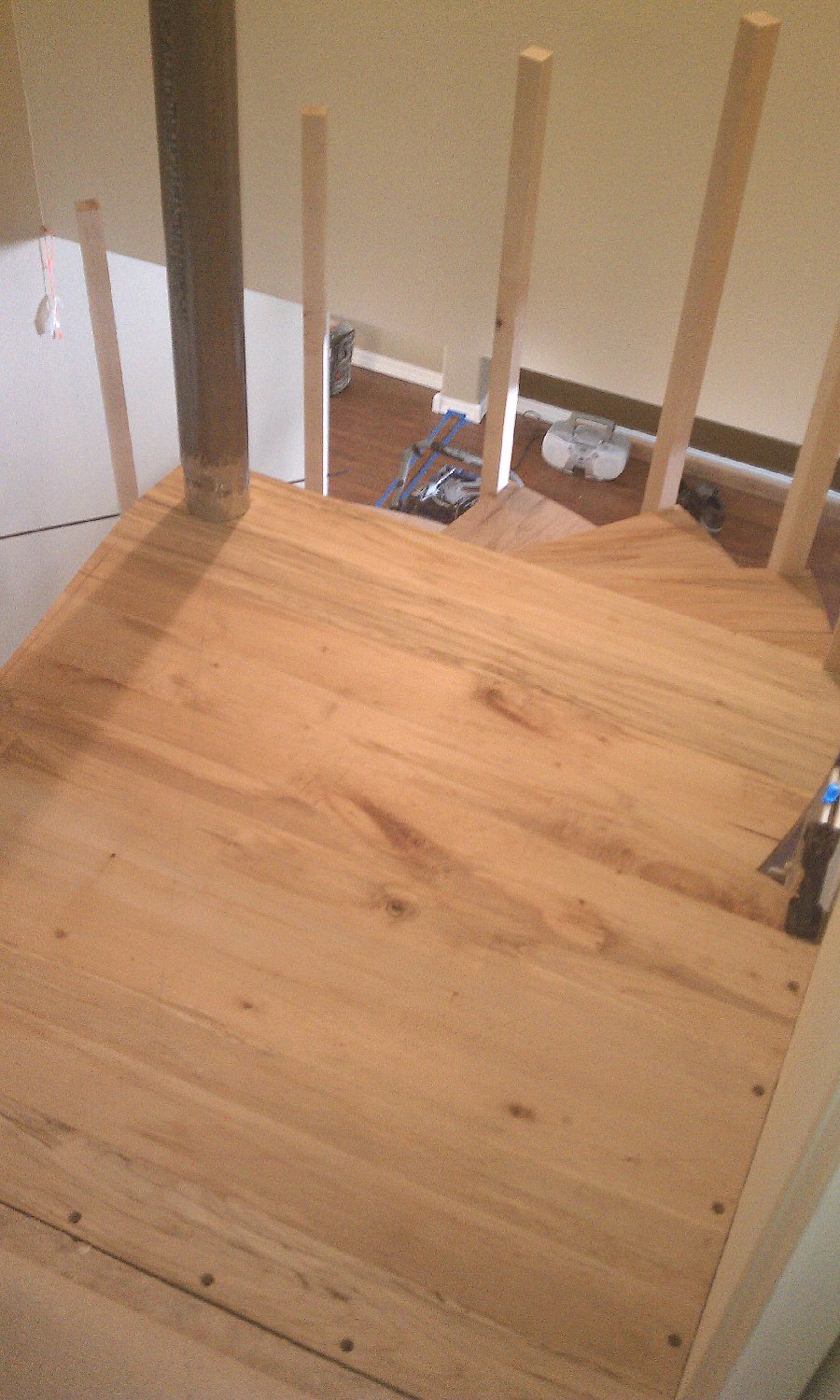 the loft we decided to go the rustic look to kind of match the ceiling. I covered the