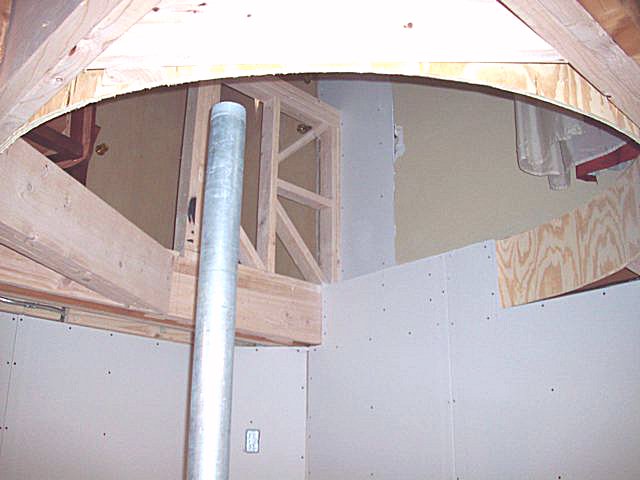 and being the first step had to be perpendicular to the wall. The square landing made for