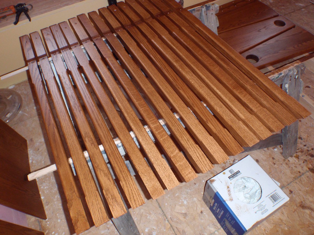 My treads are oak and the notched balusters are pine which I think I will stain to