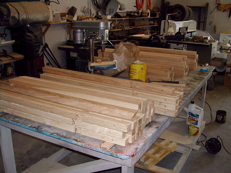 Each staircase used close to 45 balusters, the rest are for the railings around the floor holes.