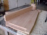 I've also started to get the landing in shape. I've cut some of the upper surface away to allow the carpet to run onto the landing a little after the stair is installed. Also pictured is the handrail portion that runs along the back edge of the landing as well as the top cap that will cover the upper posts fastener.