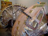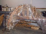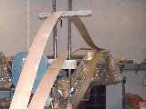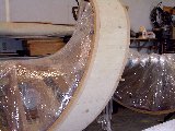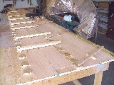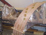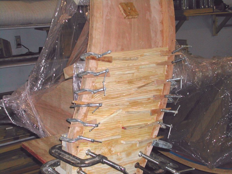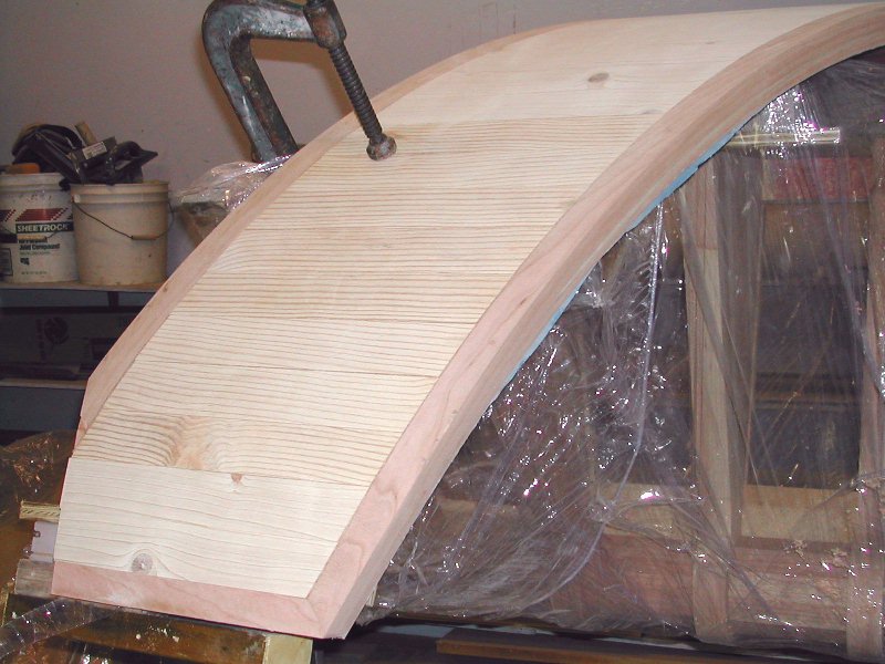 Here we've glued the final outside face lamination into place. It'll need to be sanded flush to the stringer and stained after its dried.