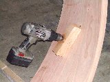 In this picture we're just beginning to attach the stringer, note the screwdrivers used to locate the pilot holes.