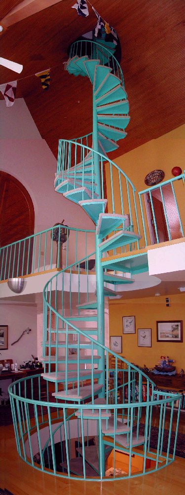 This one is close to 60 feet high and changes diameter as it goes up. The basement flight, not shown here, begins with an 8 foot diameter.